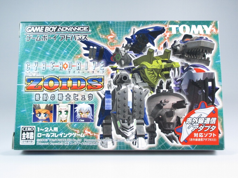 説明しますと2003年7月18日に発売されたゲームボーイアドバンス用ソフトです。赤外線通信アダプタを同梱していて、ディアブロタイガーとサイクロプスのキットを操作することが出来ます。サイバードライブゾイド自体が5980円と高く短命で終わりましたが、ゾイドキットを無線で操作するという革新的な企画でした。 | |