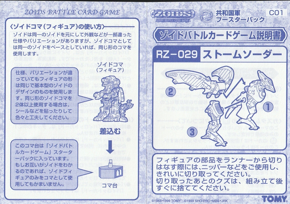 | ↑ゾイドバトルカードゲームのブースターパック付属の小冊子。ルールが複雑なため毎回小冊子が付きました。帝国、共和国でルールに違いはありませんが、ゾイドコマのイラストが違うの微妙に集めていました。 |
