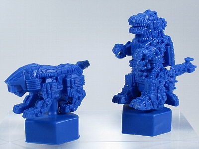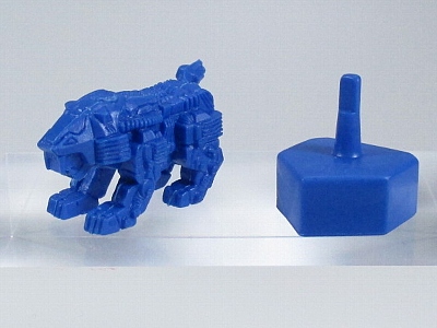 ←ゾイドコマ。コマ台に接続して使用します。リアリティを出すため、やや大き目に作られています。実は重要なのはゾイドコマではなく、コマ台の方です。 |