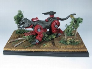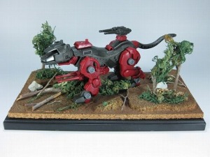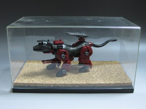 ←スプレー塗装の場合。スプレーの空気圧で水ゴケが飛んでいかないようにゾイドの箱か何かに入れてやるといいでしょう。 |