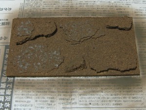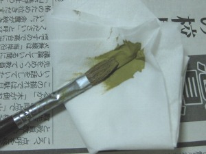 ←塗装? 適当な量の塗料を上からぶっかけて筆でかき混ぜます。もちろん全部を緑色にする必要はありません。