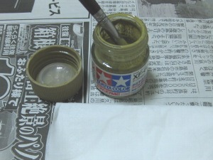 粘度の強いプラモデル用塗料だと、塗装するのに結構な量を必要とするのでここは工作用の塗料などの方がいいかもしれません。今回の管理人の作業は全てプラモデル用塗料を使用しました。 |
