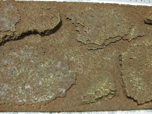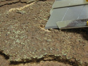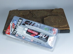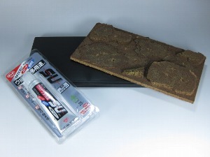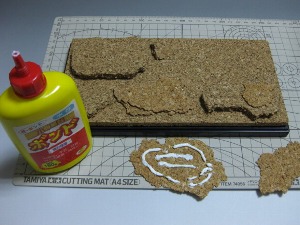 ←塗装した水ゴケを置くように接着します。一度で木っぽくならなくても大丈夫です。後から水ゴケを追加したり、切って形を整えることができます。 |
