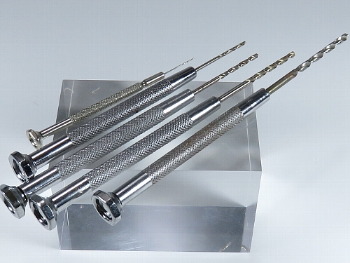 ←ハンドドリル(ダイソー) ダイソーで売っていたハンドドリルで、ドリルの刃は交換できませんが、0.5ミリから2.5ミリまで幅広くあります。 |