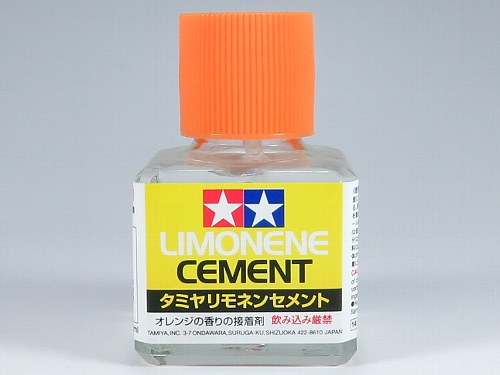 ←タミヤリモネンセメント 有機溶剤の刺激臭がなく、オレンジの香りの安全性が高いセメントです。 |