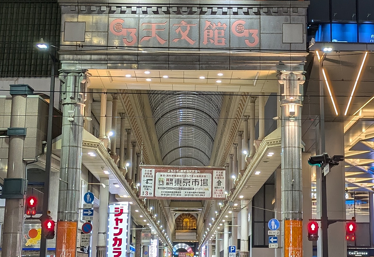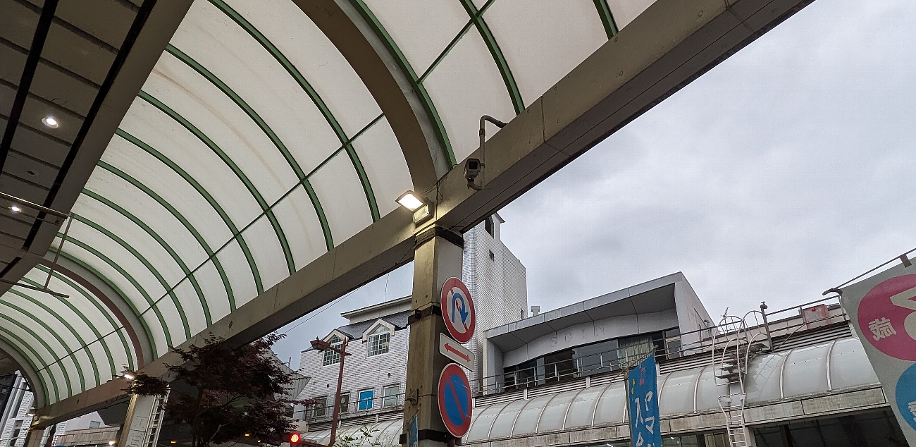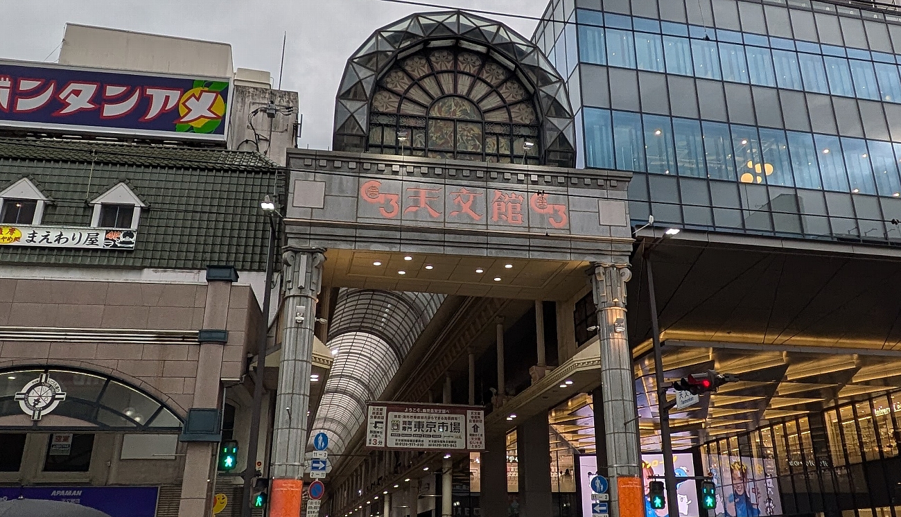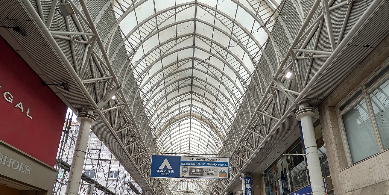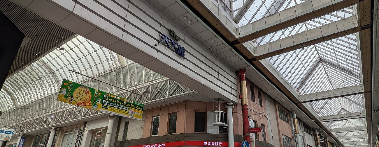 ↑天文館のアーケード。アーケードというと商店街、繁華街のメインストリートのみに展開しているイメージでしたが、天文館は桜島の降灰対策も含めかなり広範囲に展開しています。もちろん天気が変わりやすい梅雨であり、折りたたみ傘は持っていきましたが、この広範囲のアーケードは助かりました。 |