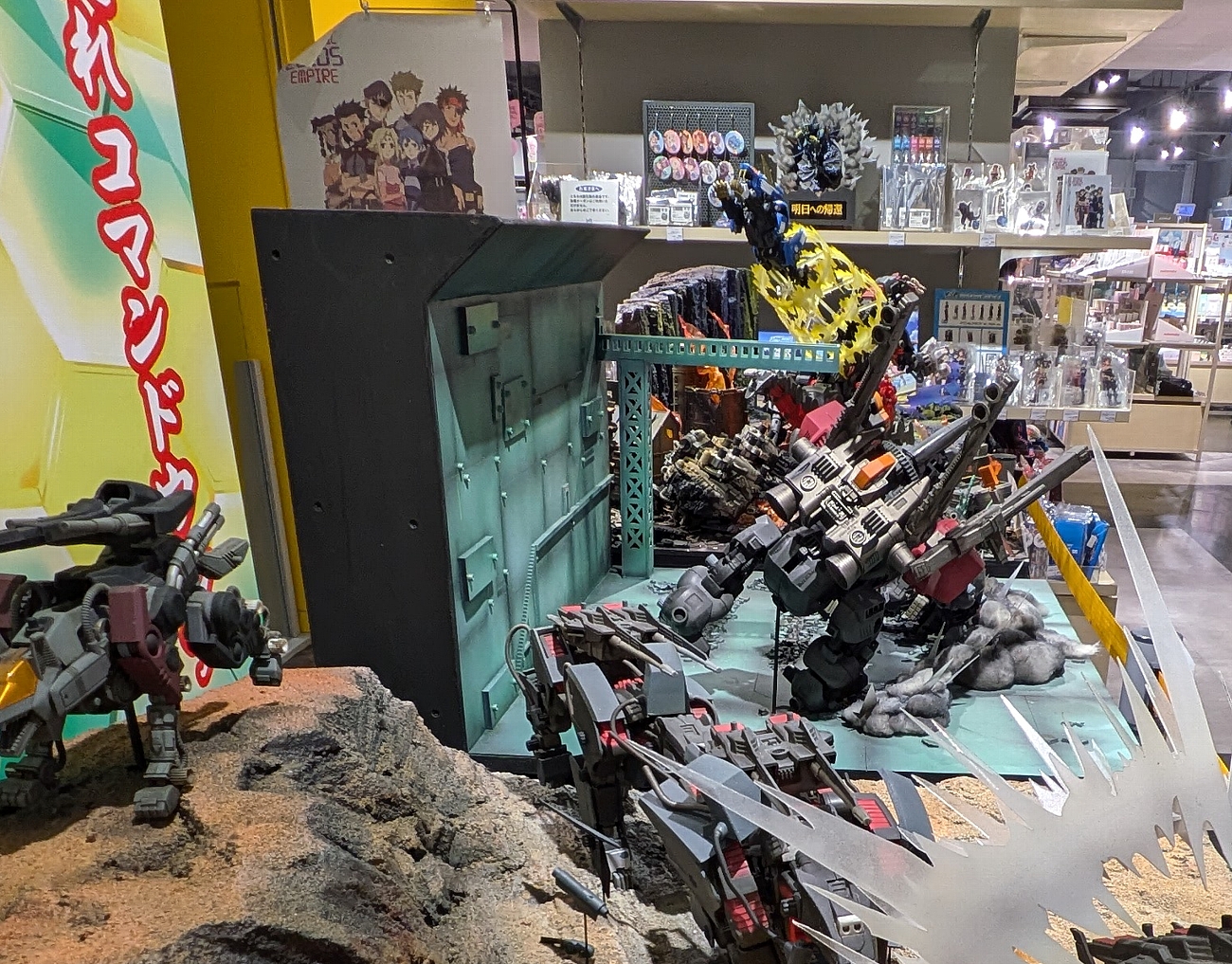 ↑鹿児島会場。福岡グッズも復活しています。ただし、大阪ジェノザウラーと愛知デスザウラーのキーホルダーは無し。 |
