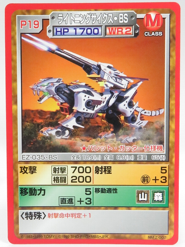 こちらはノートマップ付属ののゾイドカードです。ノートマップには2枚の限定カードが付属し、本カードともう1枚は「ブレードライガーKS」です。ノートマップの詳細についてはノートマップレビューページをどうぞ。 |