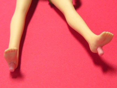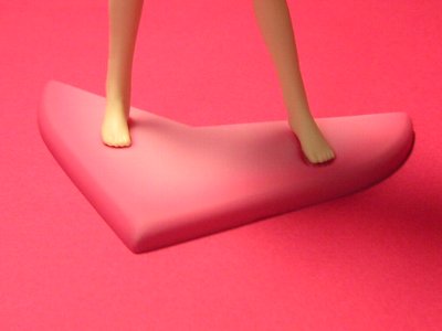 ↑スタンドが付属。1つだけだと何の形が分かりませんが、同じ限定版のコトナのフィギュアのスタンドを組み合わせることでハート型が完成します。スタンドの周りにはグラディエーション塗装がされています。背景がピンク色なので色気ないスタンドに見えますが、実際にはキレイな色のハートです。フィギュアの足が凸となっていてそのまま差し込んで接続します。スタンドなしでは自立できないとしてもフィギュアの足の方を凹にすればよかったのではと思います。