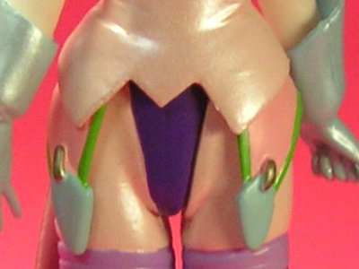 ↑下半身。股間部の紫のラインがアニメと違ってシャープなラインに変更されています。後ろは垂れ下がった形になっています。このリノンは正面から分割ラインが目立ってしまうのが残念です。