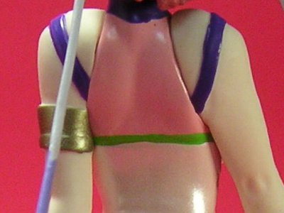 ↑上半身。服にはパール塗装がされているのはいいですが、服のピンクの部分の色味が薄く、リノンの服の印象が弱いように思います。アニメのような色にしてほしかったです。肩の分割ラインも気になります。
