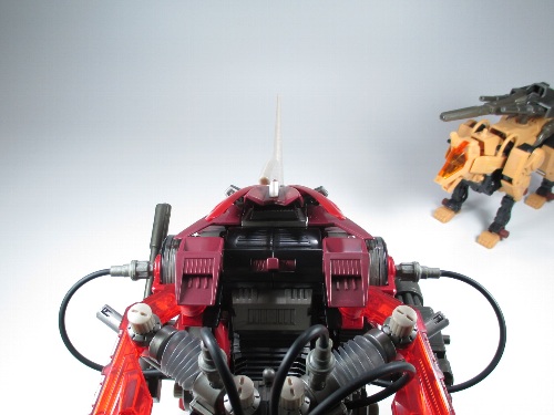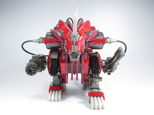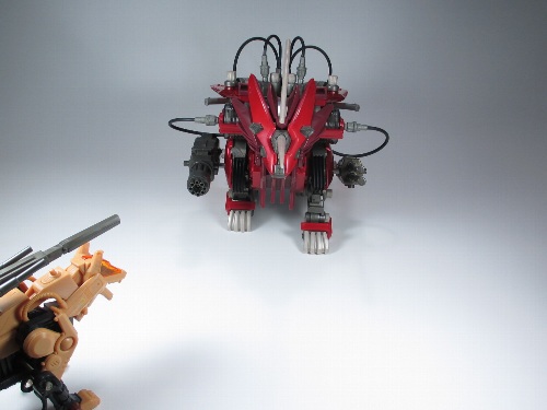 エナジーライガーの前足の武装は左右で別の武器を付けているので、左に回り込むと主砲であるエナジーキャノンに当たりにくくなります。分かりやすくキットで説明します。