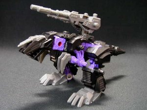 ←特典のジェノザウラーブロックス。歴代特典ゾイド中、最高傑作との呼び声の高いキット。全体のバランスがよく、換装パーツも充実。フレームはウネンラギアの流用で、外装は全て新規パーツとなっています。目はシールを貼ることで、本来のジェノザウラーにより近づきます。 |