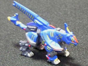 ←ブリッツタイガー。ゲーム後半、ゼルが搭乗するゲームオリジナルのトラ型ゾイド。背中のボルタキャノンで相手をスタンさせ、レーザーサーベル、ライトニングアタックで相手を倒す格闘型。ライトニングアタックは腹下の装甲を頭部に装着し、雷のごとく特攻する本機最強の攻撃。 |