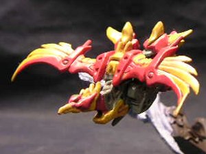 ←ゾイドサーガフューザーズのメインとなるZiユニゾンの、代表的パートナーゾイドのファイヤーフェニックスとバスターイーグル。アニメの設定どおりのユニゾンを再現していましたが、今までサーガシリーズをプレイしていた人にはユニゾンの評価は厳しく、配列や時間に制限があったり、強さの面でも複数で1体のゾイドになるため、結局パーティーが少なくなるといった難点もあり使いにくかったようです。 |