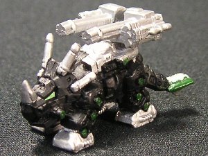 ←ダークホーン。ビームガドリングユニットを二つ装備したダブルガドリング。レッドホーンの強化型でレッドホーンとは比べ物にならないパワーを誇る。旧大戦ではビームガドリングでなくハイブリットバルカンを装備していました。 |
