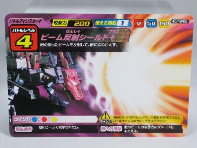 ←ビーム反射シールドプラス。セカンドで登場した上位互換カード。ビーム攻撃されたら全てのダメージを相手に跳ね返すカード。チャージ攻撃はビーム属性が多いので非常に有効。 |