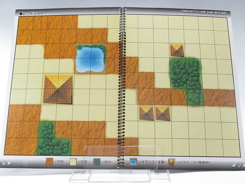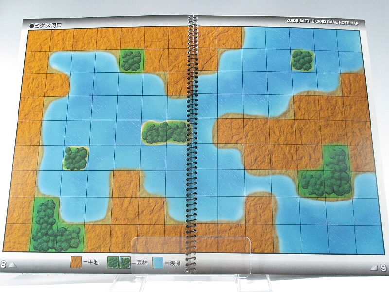 ↑ミダス河口「大河を征するもの」。このマップでは水適性を持たないゾイドでも水マップを1回の行動で1マスのみ移動可能。ただし、障害物が無いのでイベントカードで移動したり、長距離射程で攻撃が有効です。水適性ゾイドはこういうマップでないと特性を活かしにくいです。 |