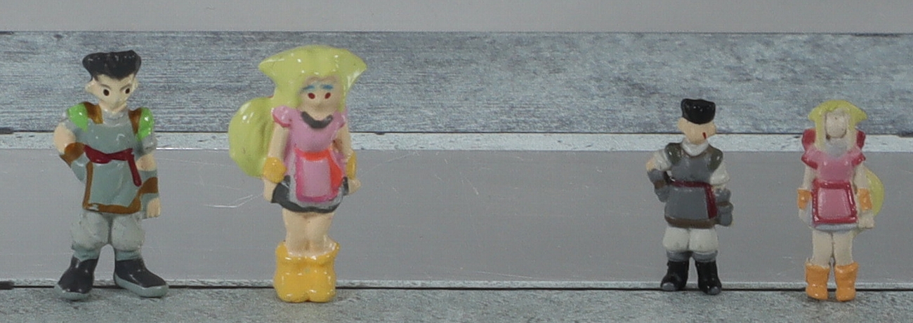 ↑彩色済みフィギュア。キットの付属の物は無彩色ですが、100円ガチャで彩色済みが登場しました。ただ、顔周りは個体差が大きいです。やや大味ですが、彩色済みは嬉しい限り。特にレイヴン(少年)はHMMでも存在しないので貴重な存在。100円商品ですが、今ではかなり貴重。 |