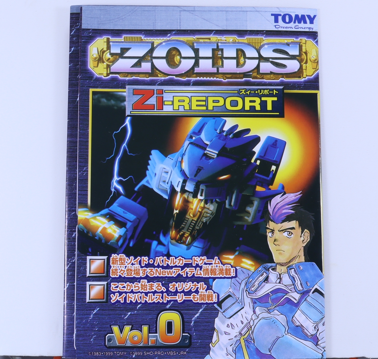 ↑ゾイドファンブックVol.1。新ゾイド最初期に発売された12体のキットに付属していた小冊子。新ゾイド発売日に買ったシールドライガーには付いてこなかったため、発売前のイベント配布かと思っていましたが、16年後に中古のネットショップで買ったシールドライガーでやっと見ることができました(地域によって違うのでしょうか?)。 |