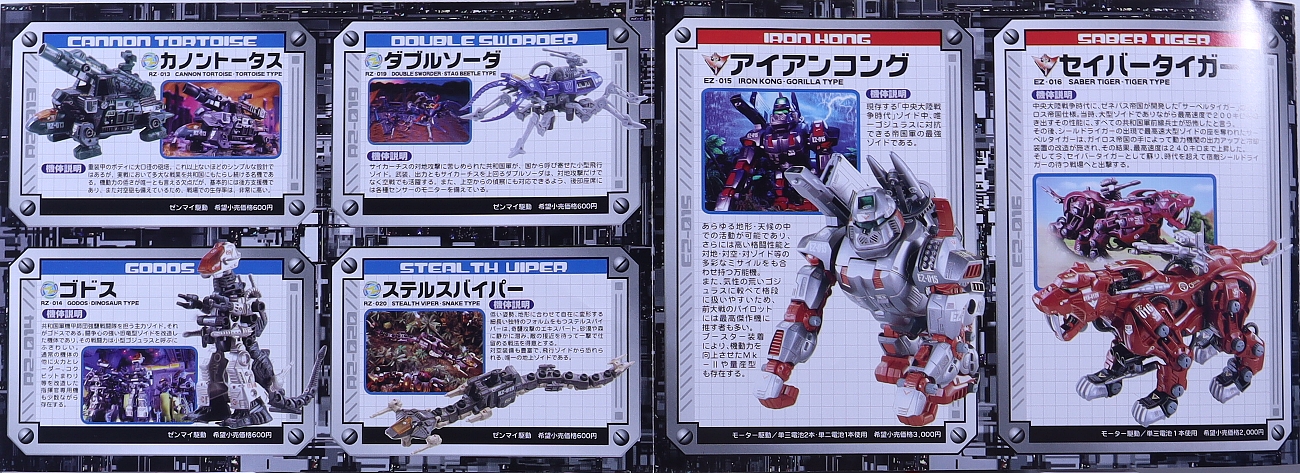 ↑ゾイドファンブックVol.5。CASのためライガーゼロを続けて掲載。サラマンダー以外は全て/ゼロに登場したゾイド。ここから小冊子のサイズが小さくなっているのが残念。 |