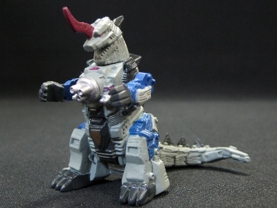 ↑ゴジュラスギガ。手足の可動に加えて、口も開閉可能。さらに背ビレパーツを外しバスターイーグルのイーグルキャノンを装備可能。バスターイーグルを合わせてパート11に収録。