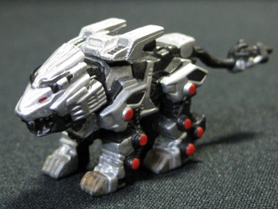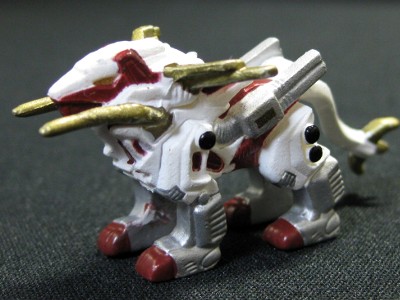 ↑ライガーゼロ シルバーカラー。ゾイドバトルカードゲーム 西方大陸戦記の初回購入特典。シルバーカラーは白銀の獣機神を連想させるカラーリングになっています。