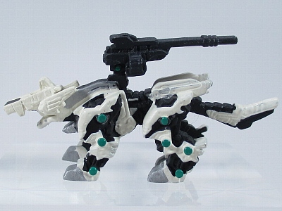 ↑ケーニッヒウルフ。本来はスコープヘッドと通常ヘッドが付き付け替えできるようになっています。通常ヘッドが紛失してしまいました。ヘッド以外にデュアルスナイパーライフルも展開状態を選べるため、遊びがいのあるアイテムでした。パート5に収録。