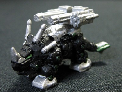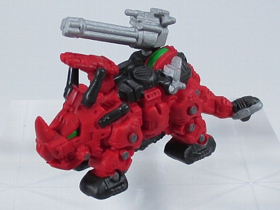 ↑レッドホーン。通常レッドホーンは対ゾイド3連リニアキャノンとガドリングユニットを選んで付けることが出来ます。パート5に収録。