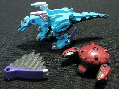 ↑ダークスパイナー。背ビレが別パーツ化していて可動させることでジャミングウェーブ発射態勢を再現。さらにジャミングブレードを取り外し、キラードームと合体することでキラースパイナーも再現可能。100円ガチャながらここまでの再現は見事。ダークスパイナー、キラードーム共にパート9に収録。