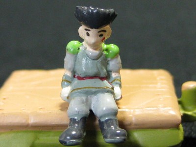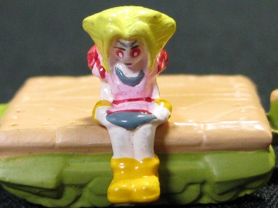 ↑バン&フィーネ。トレーラーに同梱しているパイロットフィギュア。キットのブレードライガーに乗せることが可能。簡単な塗装とはいえ、100円で塗装済みパイロットが入手できるのは嬉しい限り。フィーネがなんか怖いです。パート1&パート10に収録。