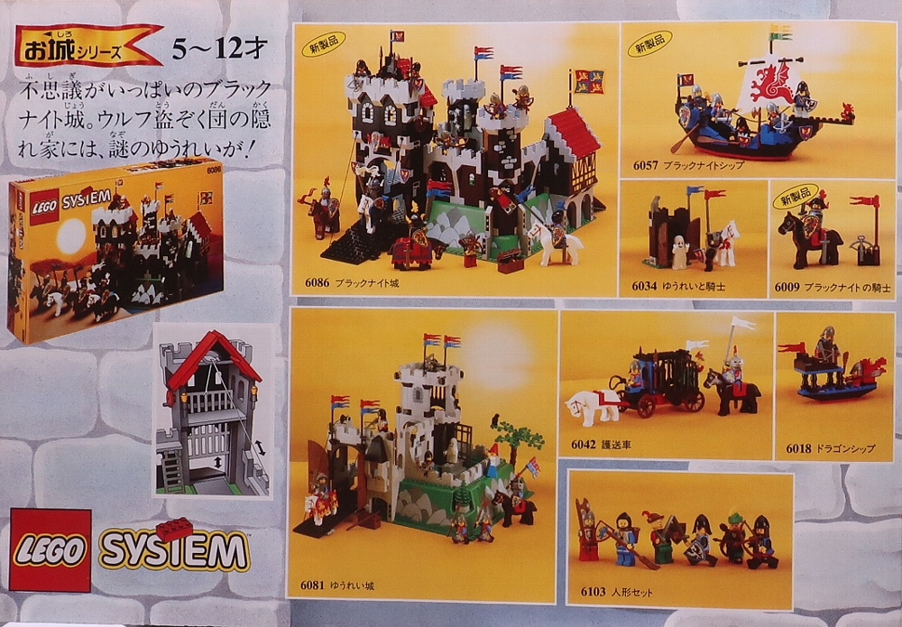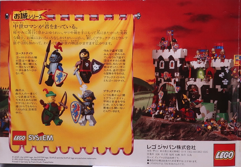 ↑お城シリーズ。ブラックナイトとウルフ盗賊団が登場。お城シリーズはこの時が一番好きでした。ブラックナイト城のカッコよさはガチ。ウルフ盗賊団の2セットも面白い仕掛けがあって子供心をくすぐるセット。ゆうれいフィグはいるけど、この頃が現実的で好きでした。 |