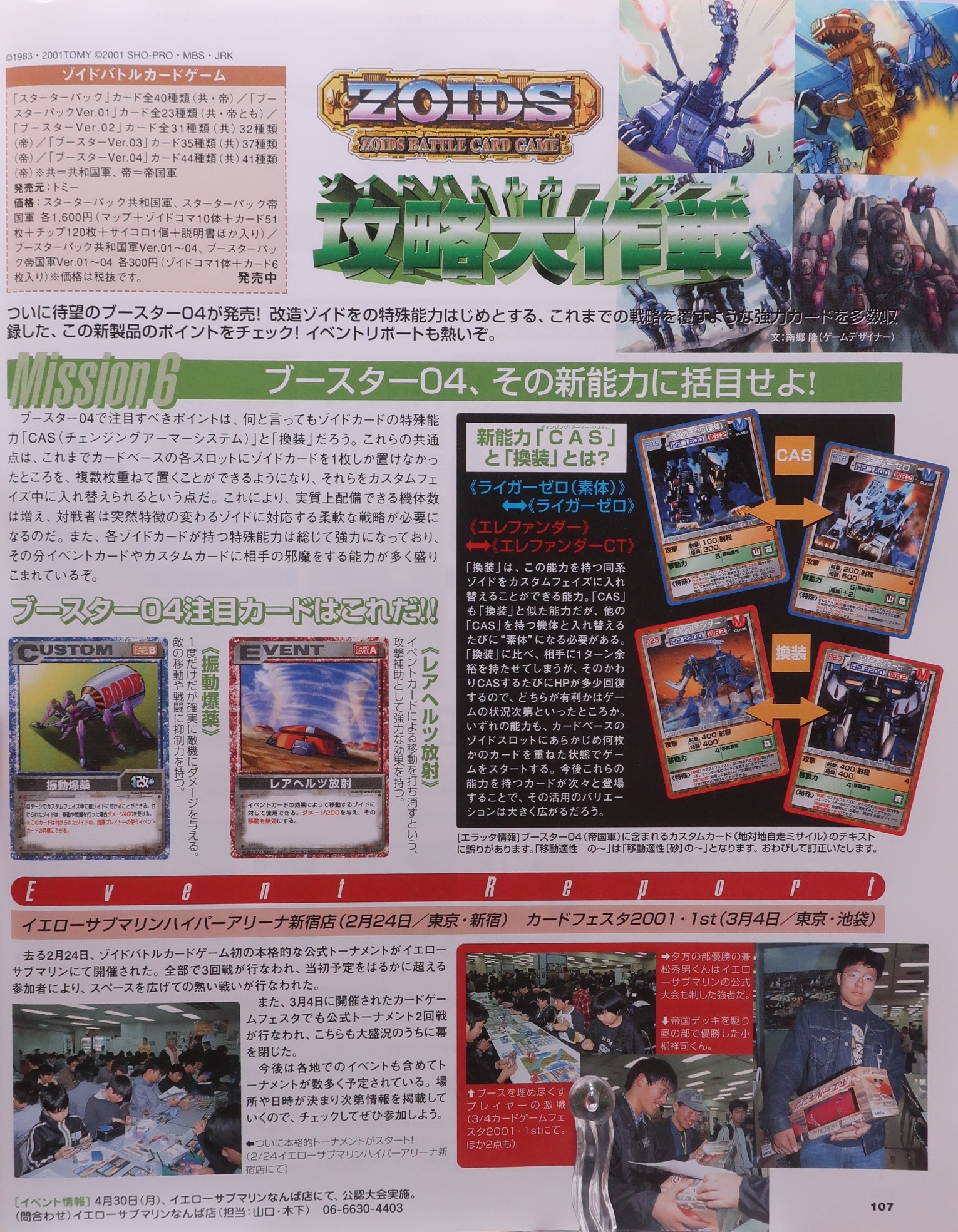 ↑ゾイドバトルカードゲーム情報。大会の優勝者も掲載されました。おめでとうございます。 |