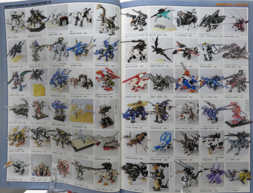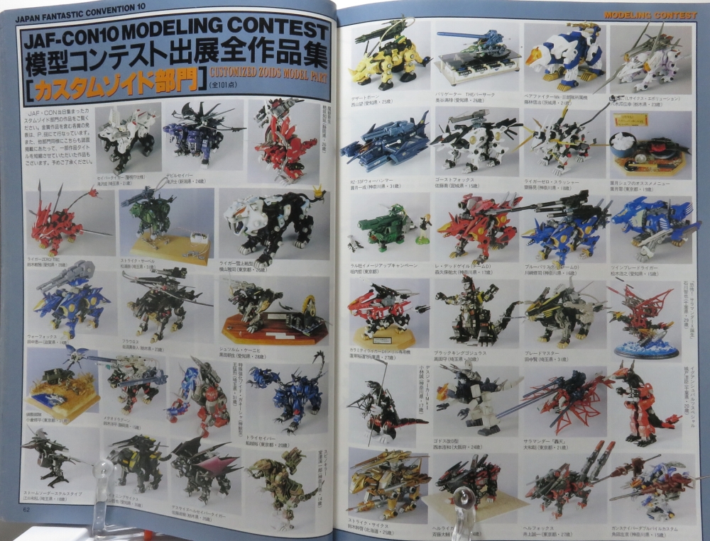 ↑模型コンテスト出展全作品集のカスタムゾイド部門。素晴らしい作品の数々で、この号をずっと探していました。中でもデビルセイバー、魔獣新生、ブラックキングゴジュラス、ウルトラザウルス・ザ・デストロイヤーなどは鮮明に覚えていました。 |