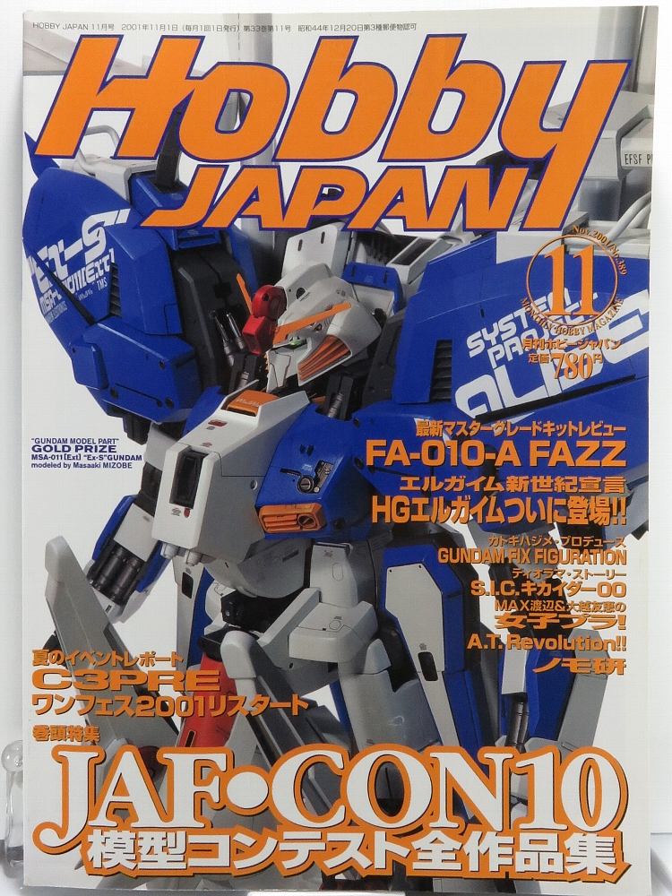 ↑ホビージャパン2001年11月号。中古で購入できた当時物。2001年の9月25日頃に発売。 |