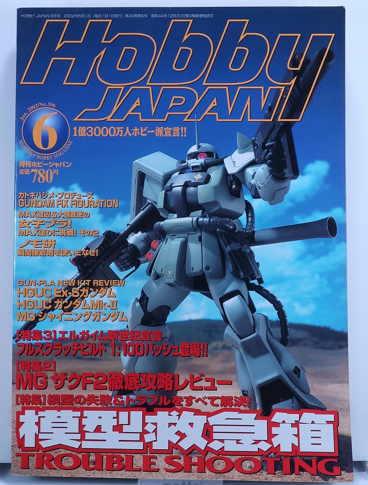 ↑月刊ホビージャパン2002年6月号。中古で購入できた当時物。2002年の4月25日頃に発売。 |