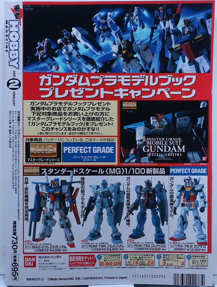 ↑電撃ホビーマガジン2000年2月号。中古で購入できた当時物。1999年の12月25日頃に発売。 |