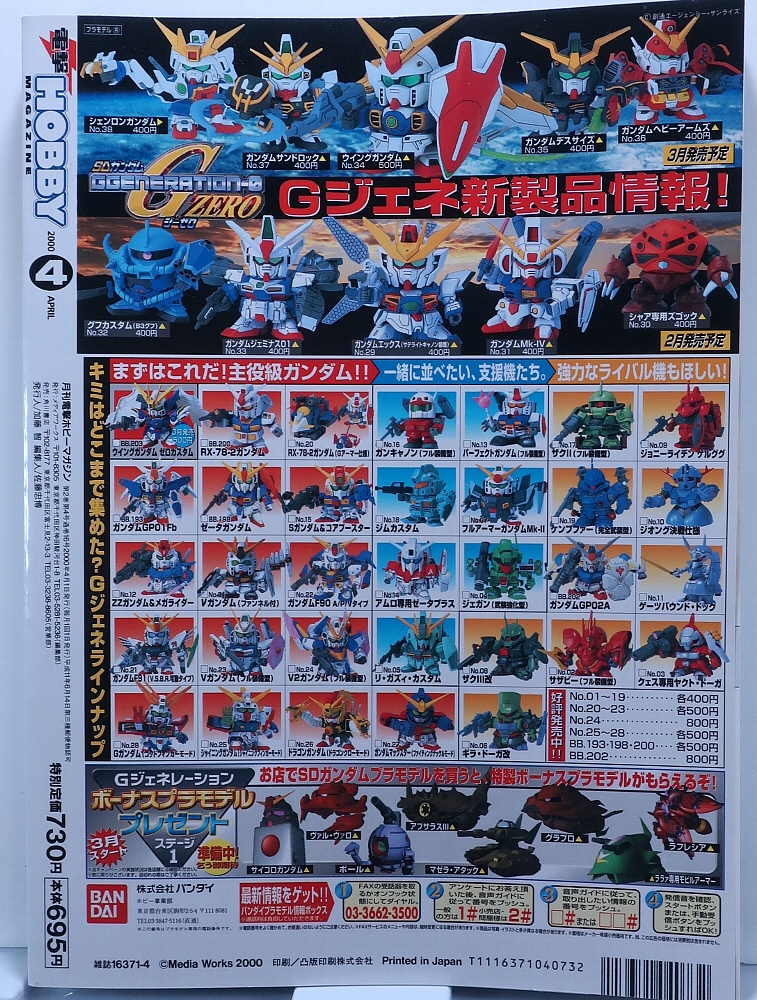↑電撃ホビーマガジン2000年4月号。中古で購入できた当時物。2000年の2月25日頃に発売。 |