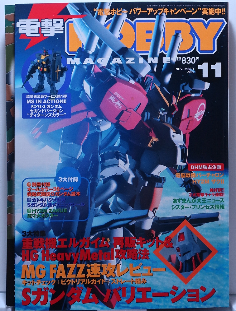 ↑電撃ホビーマガジン2001年11月号。中古で購入できた当時物。2001年の9月25日頃に発売。 ゾイド記事はクリックすると画像が大きくなります。