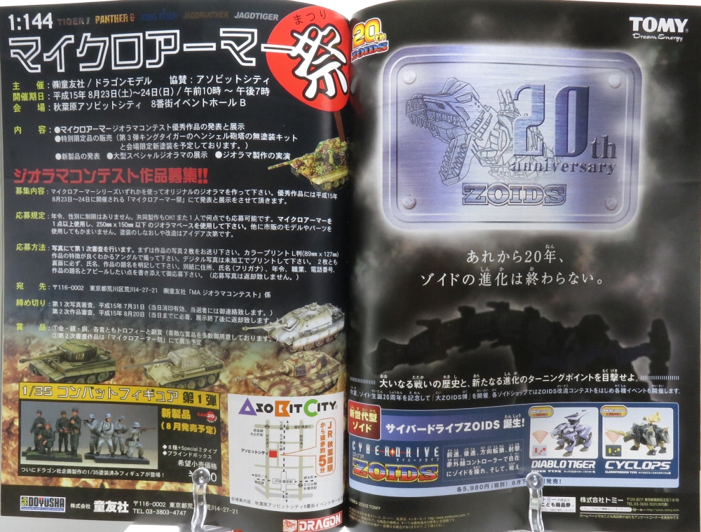 ↑電撃ホビーマガジン2003年8月号。中古で購入できた当時物。2003年の6月25日頃に発売。 ゾイド記事はクリックすると画像が大きくなります。