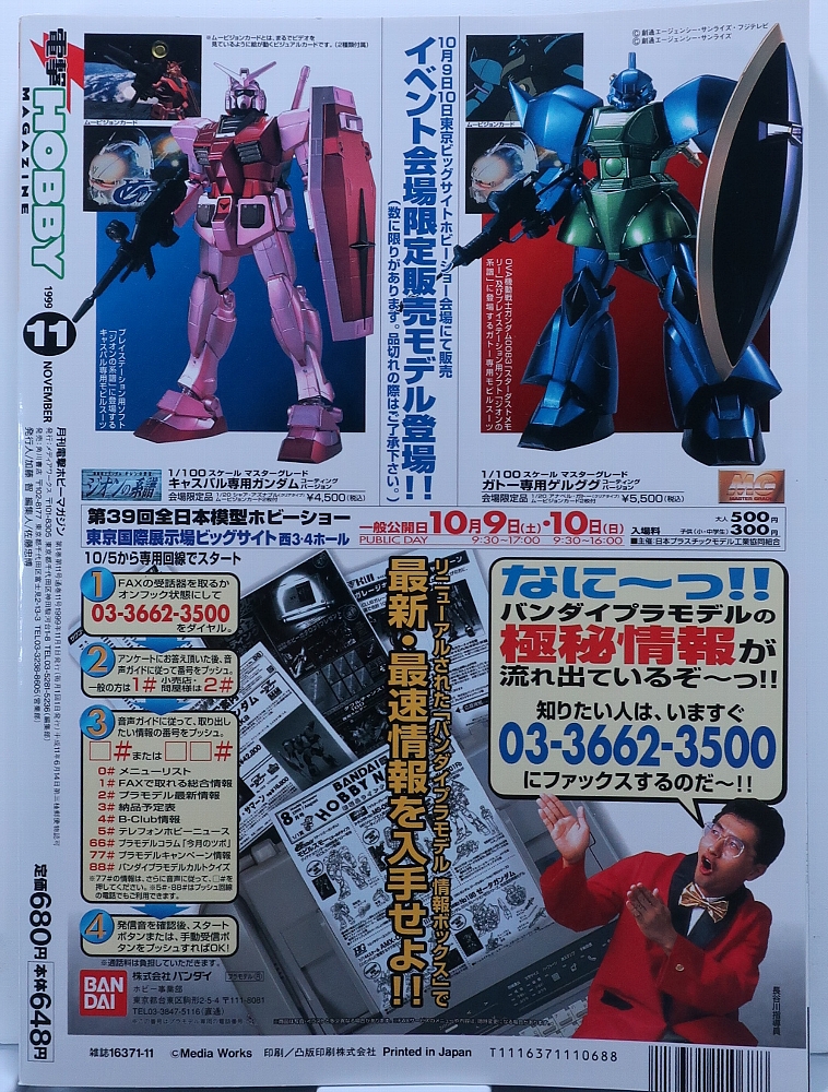 ↑電撃ホビーマガジン1999年11月号。中古で購入できた当時物。1999年の9月25日頃に発売。