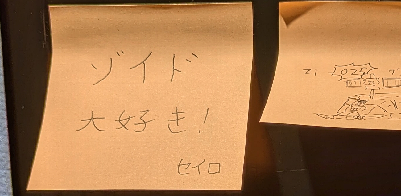 ↑応援のメッセージ1番乗り。鹿児島会場は開催初日に開店から突撃したので最速で左上隅に貼りました。その後、しばらくして見たら隣の方のグスタフメッセージが素敵でした。 |